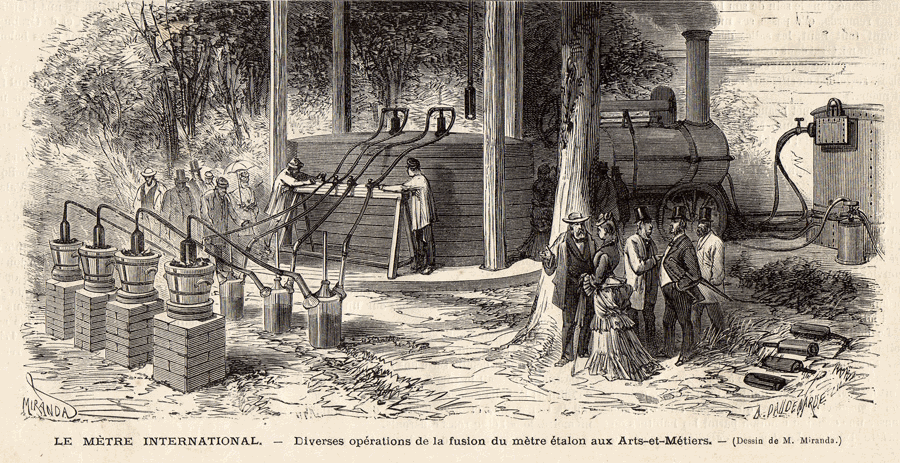 En 1668, l’anglais John Wilkins publie la description d'une « mesure de longueur universelle », une unité de mesure dans le système décimal qui serait la longueur d'un pendule qui oscille avec un battement d'une seconde, soit une période* de 2 secondes. Sa longueur fondamentale est de 38 pouces de Prusse, soit 993,7 mm.
