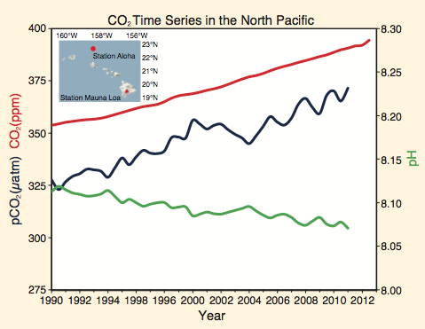 Cette augmentation d’acidité dans les milieux marins est très nuisible pour les animaux marins à coquille ou squelette calcaire. En effet, lorsque l'acidité de l'eau augmente, la quantité d’ions* carbonates* présents dans l’eau, et dont ces animaux ont besoin pour construire leur squelette, diminue. Résultat, dans un océan plus acide, ils ne trouveront plus les carbonates nécessaires pour construire leur squelette et cela impactera toute la chaîne alimentaire ! L’Océan Arctique, où les eaux froides absorbent davantage le gaz carbonique que les régions tropicales et tempérées, est particulièrement touché par le phénomène de l'acidification.