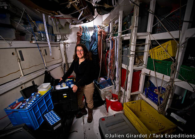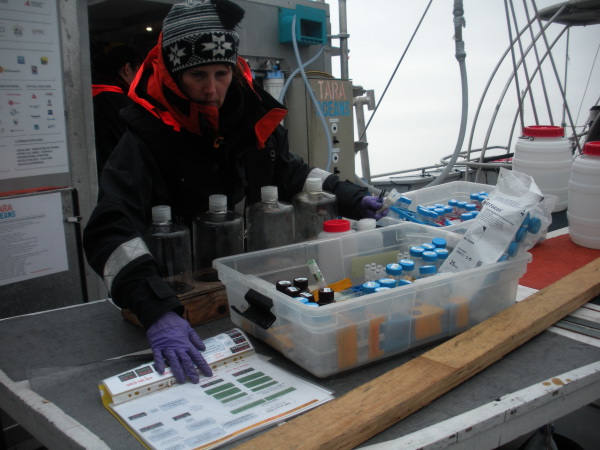 Eté 2013 : La goélette est dans l'Océan Arctique, quelque part au large des côtes russes, dans le cadre de l'expédition Tara Polar Circle. Stéphane Pesant, scientifique, est en plein échantillonnage. Il se sert de la pipette pour transférer des petites quantités de l'eau échantillonnée.